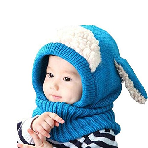 Trrad Inverno Bambina Neonato Cappello Cuffia di Lana Sciarpa Cappuccio Berretti (Blu)