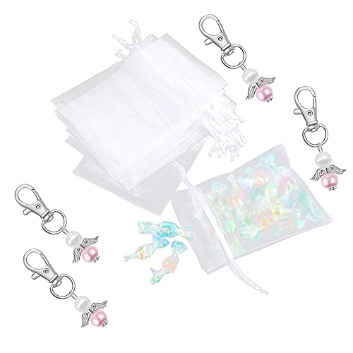 Imballaggio: il set contiene 20 portachiavi angelo custode e 20 sacchetti di organza e 20 carta kraft.
