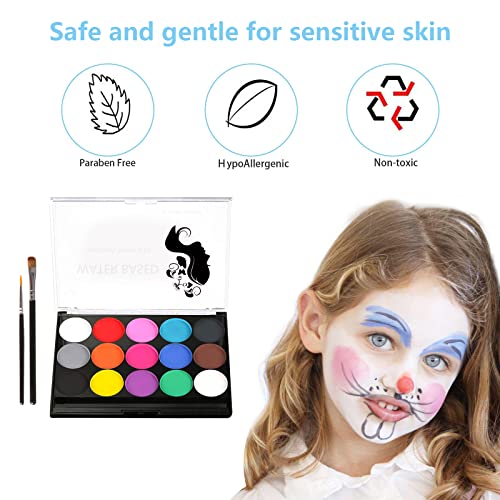 Truccabimbi Kit Body Painting 15 Colori Face Painting Trucco Viso Bambini Body Painting Colori Pittura Facciale Halloween Make Up Carnevale Bambino con 4 Pennelli Trucco, 5 Stencil