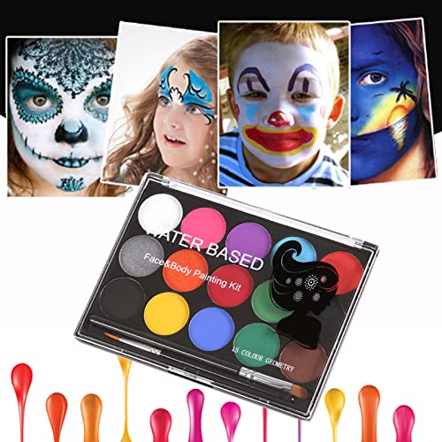 Truccabimbi Kit Pittura Facciale,15 Body Painting Colori con 4 Modelli Stencil 2 Pennelli, Face Painting Trucca Bimbi Viso,Kit Trucco Carnevale Halloween
