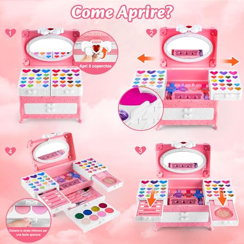 Trucchi Bambina Set - 66 pezzi Trucchi Bambina, Lavabile Set Di Trucchi per Bambini, Valigetta Trucchi Bambina, Set Trucco per Ragazze per Natale, Regali di Compleanno per Ragazze 3-12 Anni