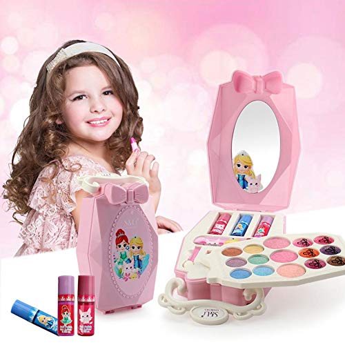 Set da trucco per bambini, 22 pezzi, giocattolo per ragazze, non tossico, sicuro e lavabile, kit di trucco, kit di cosmetici per trucchi, con borsa cosmetica, set alla moda per ragazze