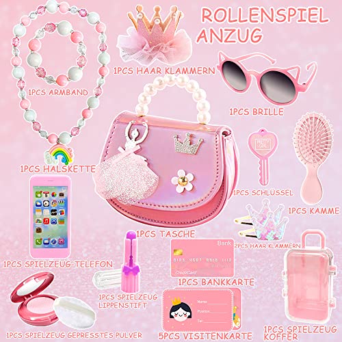 Set di 20 trucchi per bambini per bambine. Il nostro set di trucchi per bambini che ha bisogno di tutto ciò di cui la vostra principessa ha bisogno, come ad esempio 1 braccialetto, 1 collana, 1 telefono giocattolo, 1 polvere giocattolo, 1 matita per labbra, 1 borsa, 1 carta di credito, 5 biglietti da visita, 3 fermagli per capelli, 1 valigetta per giocattoli, 1 pettine, 1 chiave., 1 paio di occhiali ecco t...