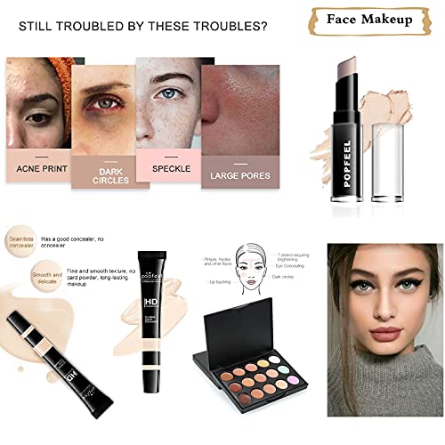 Kit per trucco completo -- Aderiscono bene, hanno una buona durata, adatto a tutti i tipi di pelli. Super vellutato e liscio polvere, texture altamente pigmentati e duraturi, una gamma di colori a portata di mano, intensità del colore modulabile per un'ampia gamma di look, mantengono il trucco perfetto. Tutti i cosmetici sono lavabili e facili da rimuovere con un detergente per il viso o una lozione struccante, nessun odore, nessuna irritazione alla pelle, liberando la tua preoccupazione.