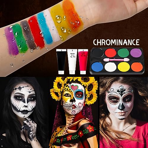 【SICURO E NON TOSSICO】 Questo kit di pittura per il viso è una vernice per il trucco professionale di alta qualità per bambini o adulti con qualsiasi pelle. Kit trucco halloween ipoallergenico e delicato sulla pelle senza causare prurito o irritazione. Pittura viso halloween sicuro e delicato sulla pelle sensibile.