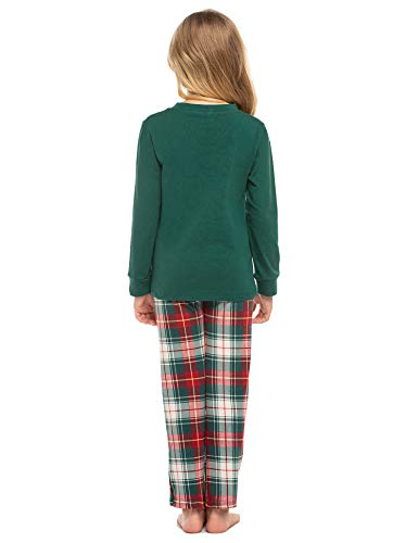 Trudge - Pigiama per bambini e bambine, unisex, a maniche lunghe, in cotone, top a quadretti, 2 - 10 anni, 110 116 128 140 150 verde 130 cm