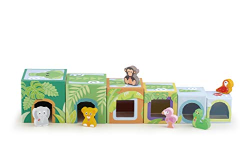 Include 6 cubi di diverse dimensioni e 6 formine in legno