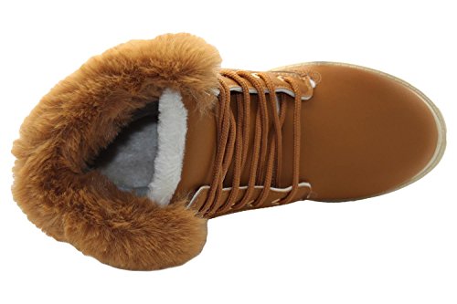True Face Stivali invernali da donna da combattimento da donna in pelliccia sintetica calda con suola con suola in pelle sintetica, taglia 3-8, Giallo, 37 EU