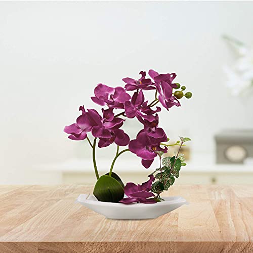 True Holiday Composizione di orchidee artificiali, perfetta per vasi di porcellana bianca, come decorazione per interni, in plastica e realistica D-viola-1