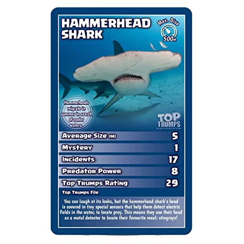 Scoprite il Predator potenza per un grande squalo bianco, la dimensione media di uno squalo elefante e il mistero di uno squalo balena in questa edizione di top Trumps - Sharks