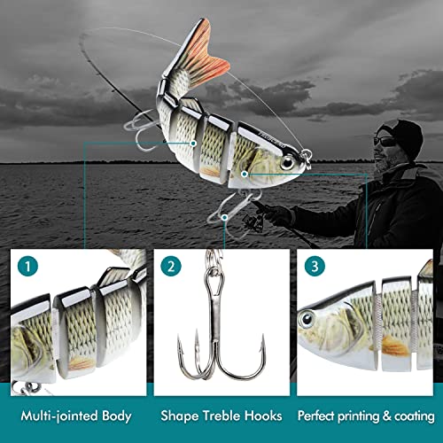 ALTA SIMULAZIONE- Con gli occhi 3D dall'aspetto realistico e il rivestimento in polvere perlato, questa swimbait appare molto delicata e vivida che sembra un vero pesce. Un'esca da pesca perfetta che inganna facilmente i pesci bersaglio.