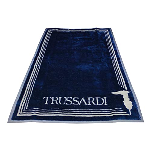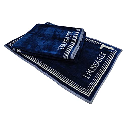 Trussardi Coppia di Asciugamani Home Linen Art Frame in Velour e Spugna idrofila all'Interno (1+1 Viso + ospite) (Blue 002)