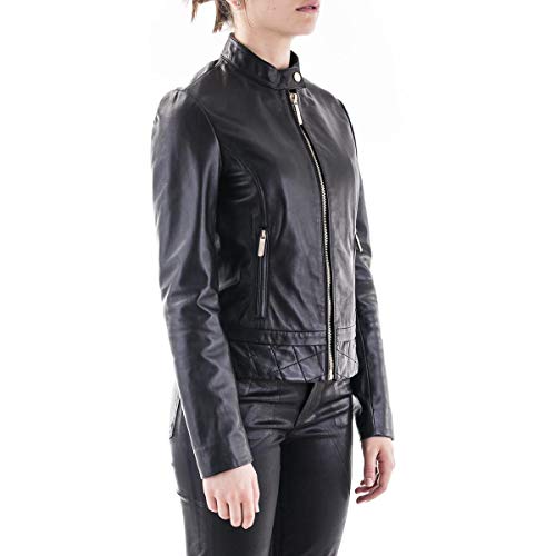 Trussardi Jeans Jacket Biker Soft Touch Leathe Giacchetta di Pelle, Black, 44 Donna