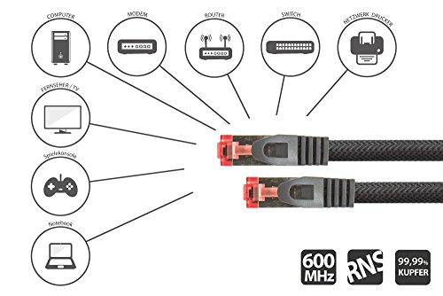 Trussardi Python Series Ethernet LAN Cavo Patch con Rastnasenschutz RNS E Nylon Intrecciato Nero Nero 25 m