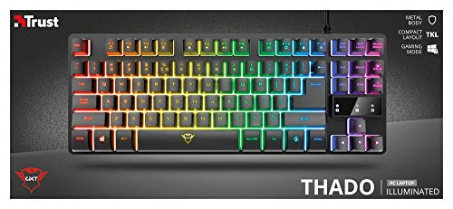Trust Gaming 24067, TKL GXT 833 Thado Gamer Keyboard RGB Tenkeyless (20% più piccolo), membrana, layout QWERTY spagnolo, anti-ghosting, USB, con cavo, PC/computer