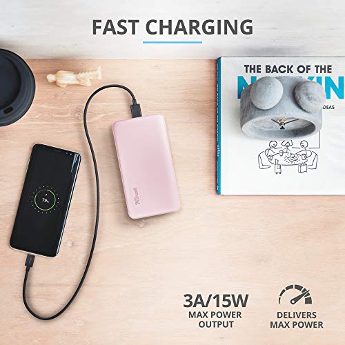 Trust Mobile Primo Power Bank 5000 mAh Caricabatterie Portatile Batteria Esterna Ultrasottile per Smartphone, iPhone, Tablet, iPad - Rosa