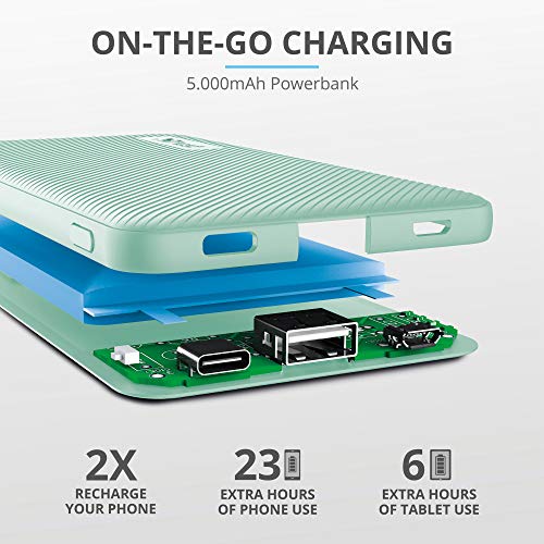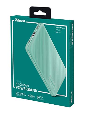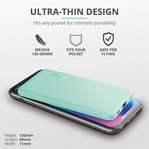 Trust Mobile Primo Power Bank 5000 mAh Caricabatterie Portatile Batteria Esterna Ultrasottile per Smartphone, iPhone, Tablet, iPad - Turchese