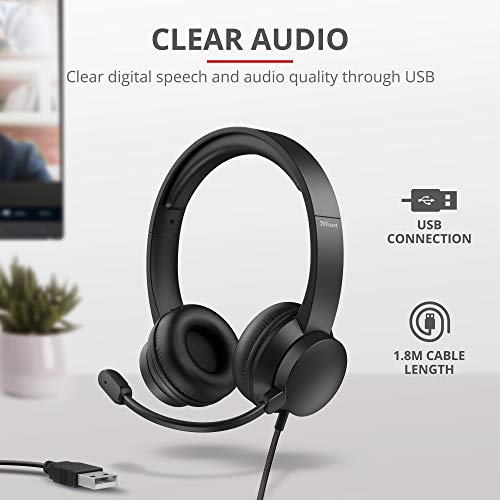 Trust Tolar Full HD 1080p Webcam, 2 Microfoni Integrati, Fuoco Fisso & Roha Cuffie Professionali On-Ear Usb Con Microfono, Confortevole Morbidi Padiglioni In Finta Pelle, Cavo Di 1