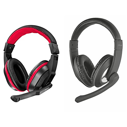 Trust Ziva Cuffie Over-Ear da Gioco con Microfono a Scomparsa, Nero/Rosso & Reno Cuffie Over-Ear con Controllo Volume Integrato e Microfono Regolabile, Nero