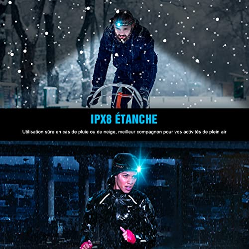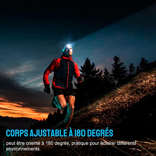 (Tre modalità) Funzionamento a un tasto sulla testa, comodo e veloce. Trois modes: longue lumière / verrouillage / flash stroboscopique, jusqu'à 1000 lumens, jusqu'à 160 heures d'autonomie, c'est le meilleur choix pour l'extérieur.