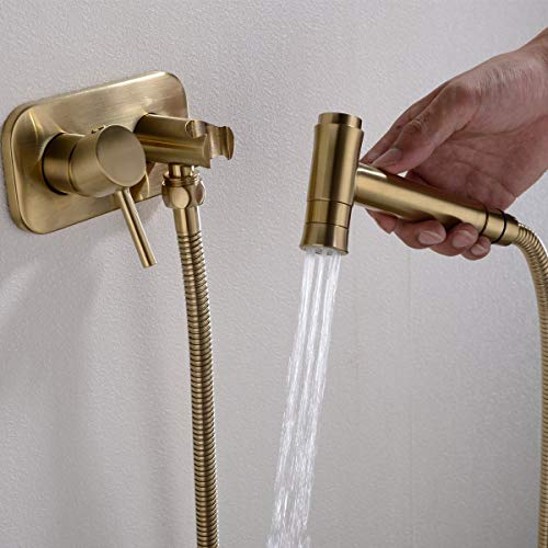TRUSTMI Ottone spruzzatore per bidet Miscelatore nascosto caldo e freddo Kit rubinetto, oro spazzolato