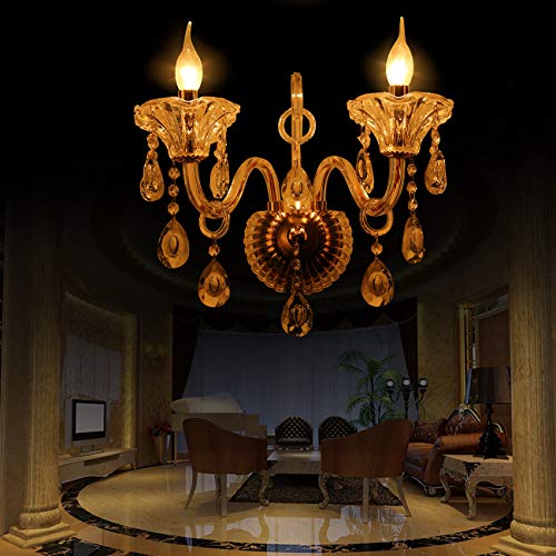 TRY-YEAN Applique a Candela 2 Bracci Lampadari Cristalli Gocce Cristallo Trasparente K9 Applique da Parete E14 Forma di Candela per Camera da Letto Mensa Disimpegno Sala da Pranzo
