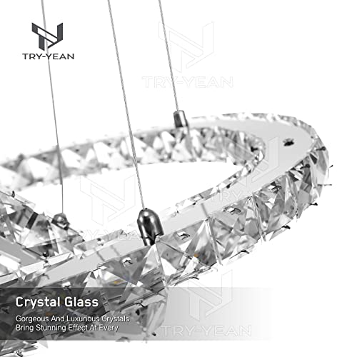 TRY-YEAN Lampadario Moderno in Cristallo a 2 Anelli Illuminazione a Cristallo Lampadario Camera da Letto in Vetro K9 E14 Lampadario Barocco Regolabile, 3 Colori Chiari per Soggiorno, Sala da Pranzo