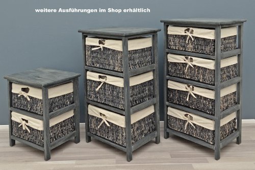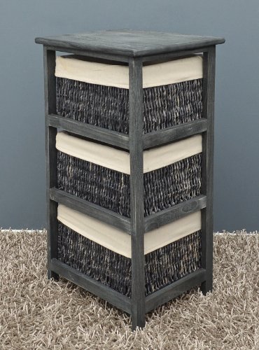 Questo mobile in stile rustico antico si adatta ad ogni ambiente: dal soggiorno al corridoio, dal bagno alla camera da letto. Fabbricato in legno di Paulonia grigio e completato da 3 cestini in mais naturale.