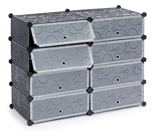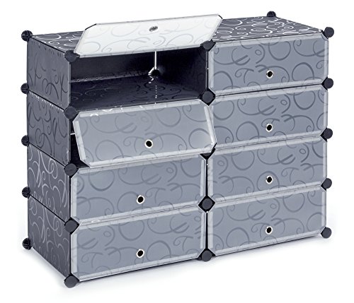 Questa scarpiera ad innesto in colore nero con porte bianco trasparente si adatta facilmente all'ambiente desiderato, che sia la camera dei bambini, il bagno, l'ufficio, il corridoio o la camera da letto