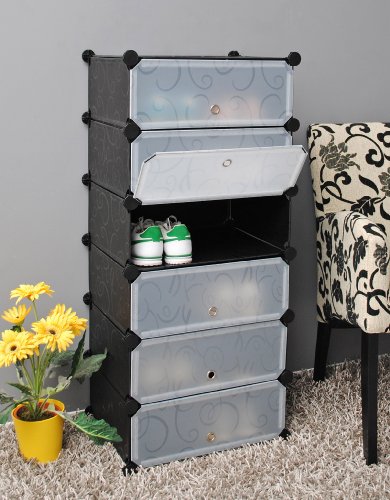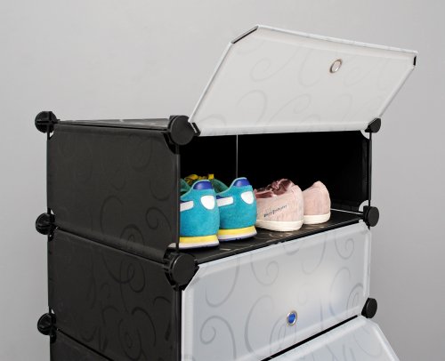 Scarpiera ad innesto in colore nero con 6 sportelli removibili in bianco trasparente;