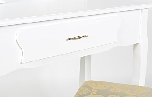 Ts-ideen 5954 Pettiniera Coiffeuse Bianca in Stile Country con Specchio Girevole 360° e Sgabello Coordinato.