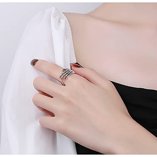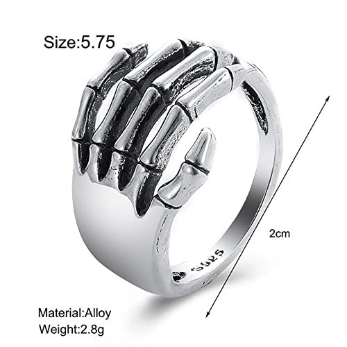 TseenYi Anello teschio a mano gotico a cinque artigli anello teschio anello hip-hop anello serie oscura gioielli per donne e ragazze cocktail party natale(argento antico)
