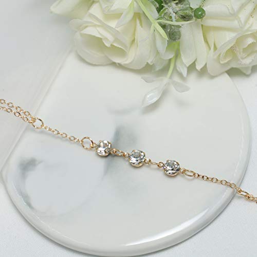 TseenYi Bracciale con catena per dito, dorato, semplice, con cristallo, bohémien, estivo, gioiello con catena da mano, per donne e ragazze