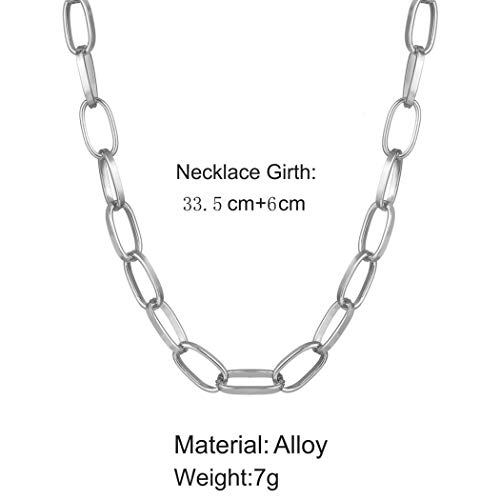 TseenYi - Collana a catena quadrata punk, in argento, con clip spesse e ovali, per donne e ragazze