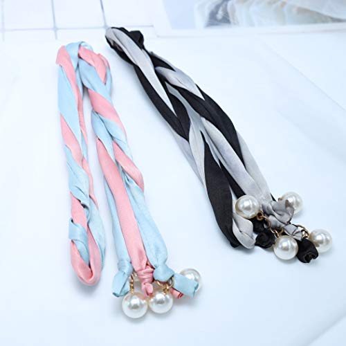 TseenYi - Fascia per capelli in filo di ferro con perle e accessori per capelli, per donne e ragazze (blu + rosa)