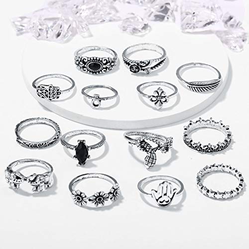 TseenYi Vintage Boho Knuckle Anelli Argento Impilabili Foglia Elefante Anelli Set Retrò Moonstone Midi Anelli Accessori Mano Gioielli per Donne e Ragazze