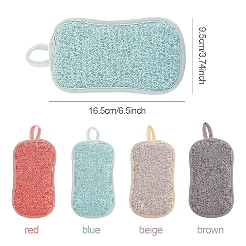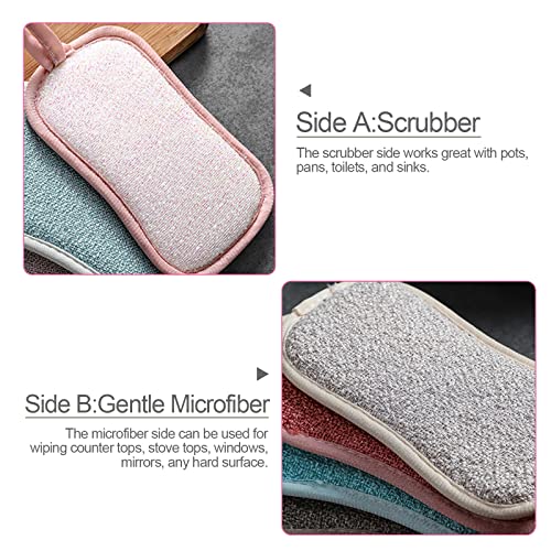 TSHAOUN Confezione da 4 spugne antibatteriche in microfibra per piatti, spugne da cucina a doppia azione, ideali per padelle antiaderenti, antigraffio, multicolore