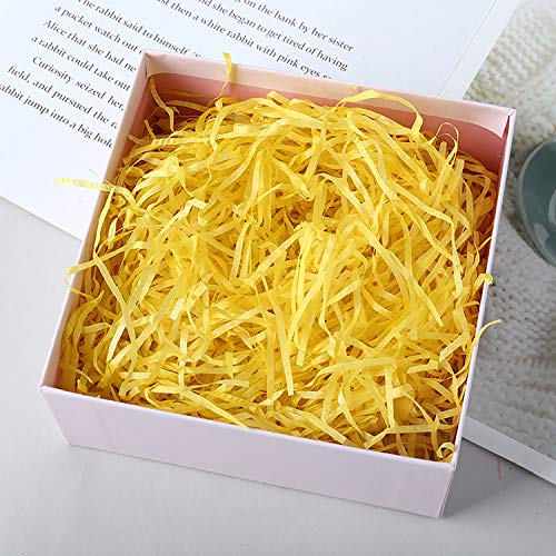 TSHAOUN 100 Grammi di Carta Velina Tagliuzzata Kraft tagliuzzata Raffia Cestino, Brandello Cesto Regalo Imballaggio di Riempimento Carta per Confezioni Regalo Decorazione Forniture per Feste (Giallo)
