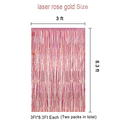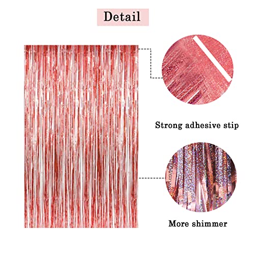 TSHAOUN 2 Pack Tende Luccicanti con Frange in Lamina 3 Piedi x 8,3 Piedi Tende Metalliche Scintillanti per La Festa Nuziale di Compleanno Decorazioni per Porte e Finestre di Natale (Rose Gold)