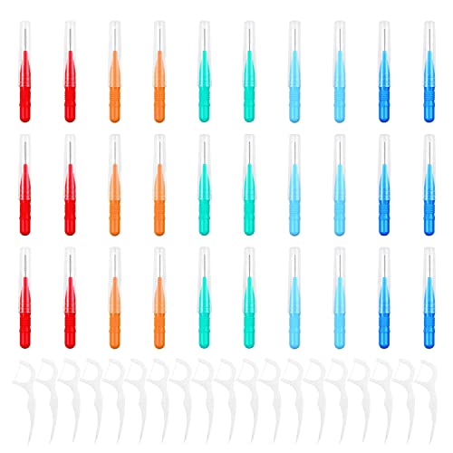Set da 50 pezzi: la confezione include 30 spazzolini interdentali in 5 diversi colori (rosso, arancione, verde, blu intenso e azzurro) e 20 bastoncini di filo interdentale. Ogni colore rappresenta 6 pezzi, ciascuno con un copricapo separato, indipendentemente, pulito e ordinato. Un must per chi prende sul serio l'igiene orale.