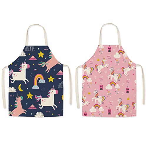 TSHAUN 2 Pezzi Grembiule per Bambini Stile Cartone Animato Ragazzi Ragazze Grembiuli per Cucina Cottura Pittura Giardinaggio Usura (Stile B)