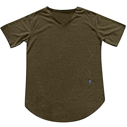Tshirt - Maglietta da uomo a maniche corte con scollo a V, tinta unita, maglietta sportiva estiva da uomo, maniche corte verde militare L
