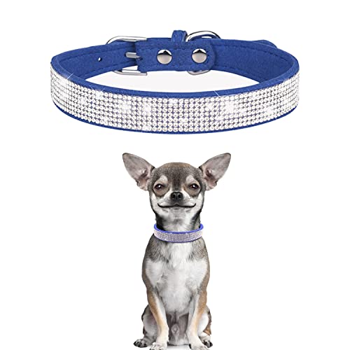 TSKDKIT Collare per cuccioli per gatti di piccola taglia collare per cani carino strass collare per animali domestici scintillante collare per gatti in morbida pelle (M blu)