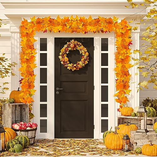 TSLBW Ghirlande di Foglie d'Acero Artificiali 2 Pezzi Artificiale Appeso Foglie di Acero Autunno Viti per Interni Esterni Raccolto Decorazione Ringraziamento Camini di Natale