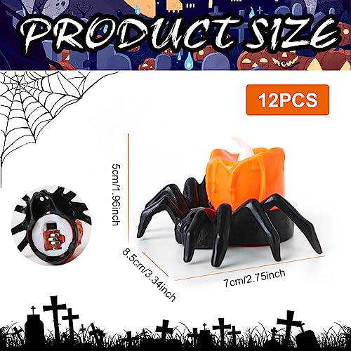 TSLBW Halloween Candele Ragno Tealight 12 Pcs Candele Senza Fiamma Tremolante con LED Arancione Spider Night Light per Decorazioni di Halloween All'aperto Interni Ornamenti