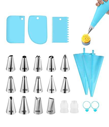 TSLRSA 23 Pezzi Decorazione la Torta, Decorazioni Torte Kit di Utensili,Borse ed Ugelli per Glassa, Giradischi, Spatola