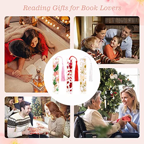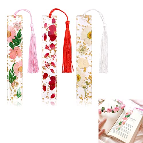 TSLRSA Segnalibri a fiori secchi in resina personalizzati - 3Pcs segnalibri floreali pressati colorati per lettura di libri di studio, per lettori di scuole, studenti e insegnanti, idea regalo