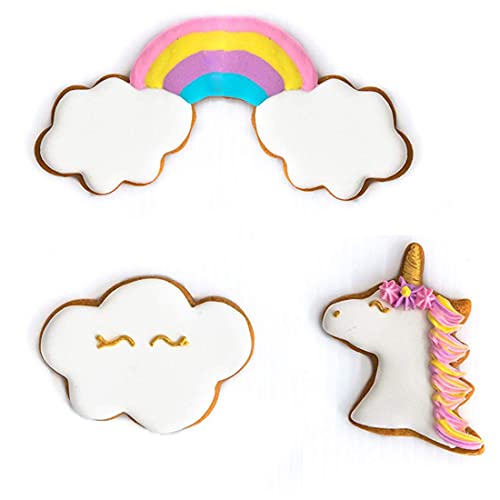 [Set di stampi per biscotti]- 5 forme diverse tra cui unicorno, arcobaleno, stella e bacchetta magica.