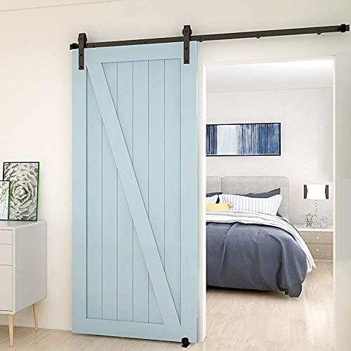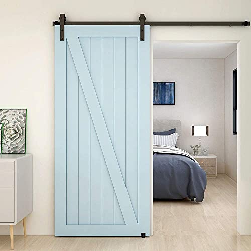 TSMST 10.5FT/325CM Binario per Porta Scorrevole Kit, Nero e Rustico Porta Scorrevole Kit Accessori con Guida a Pavimento Regolabile Scorrevole per Porta Singola Scorrevole