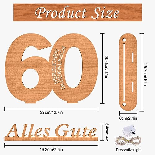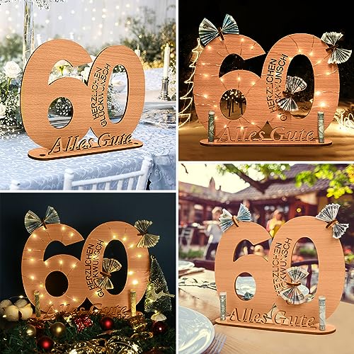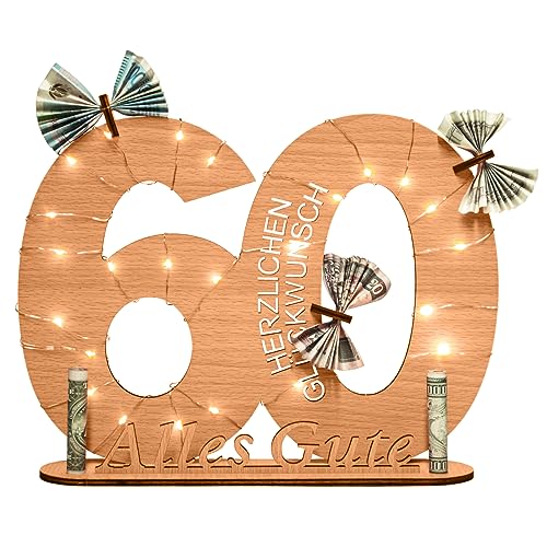 TSQNW 2023 Libro degli Ospiti in Legno - 60 Anni Compleanno Idee Regalo per Uomo Donna con Luce LED - Creativa Fai da Te Decorazione Desktop Regalo - Regali Creativi per L'anniversario in Denaro